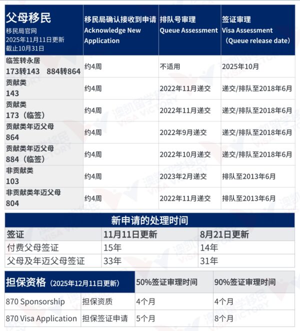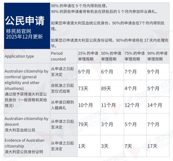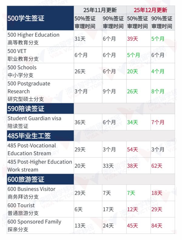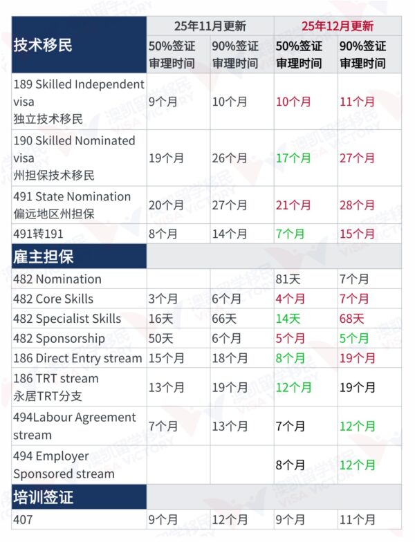 澳大利亚移民局2025年11月更新了签证审理时间。